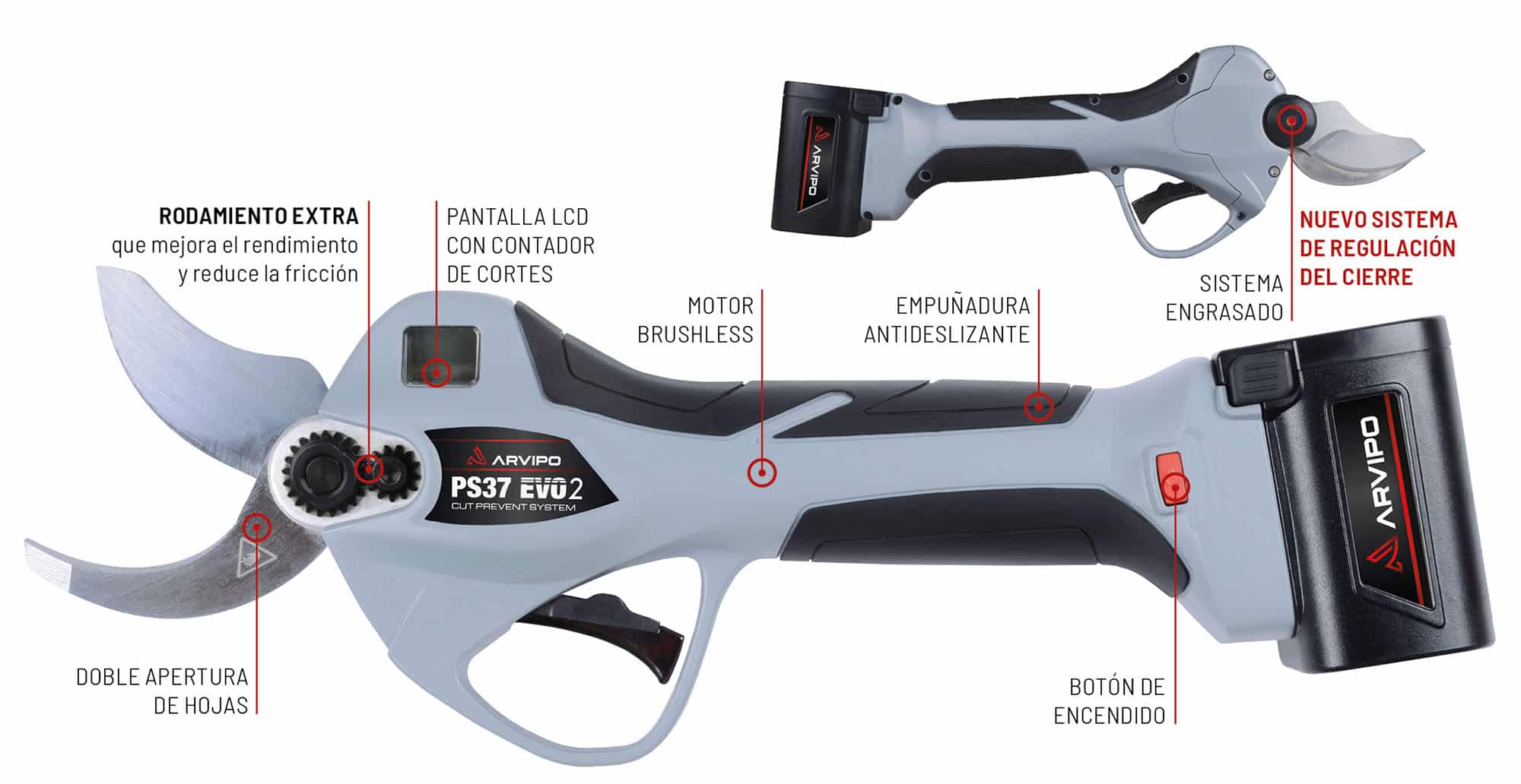 Esta nueva versión CUT PREVENT SYSTEM que protege de cualquier corte, la tijera se detiene en contacto con la piel del podador. Una hoja inteligente que evita cortes de alambres indeseados.